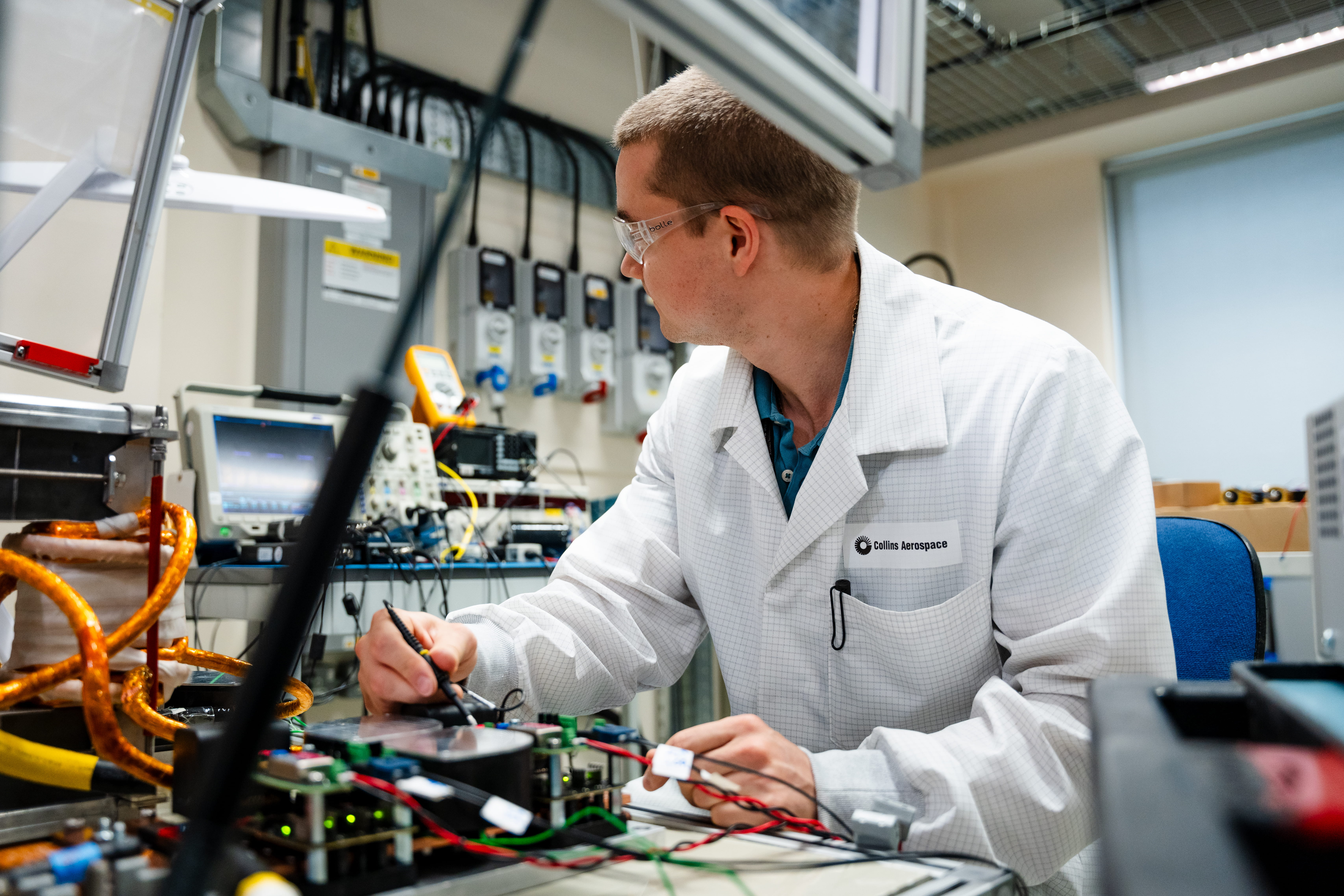 A Collins engineer tests power conversion units for HECATE at Solihull