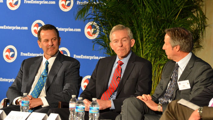 Joining Hess on the "Leaders in Manufacturing" panel were Guy Hachey, president and chief operating officer, Bombardier Aerospace; Clayton Jones, chairman and chief executive officer, Rockwell Collins; and Gary Spulak, president, Embraer Aircraft Holding, Inc. Bob Crandall, former chairman and chief executive officer, AMR Corporation and American Airlines, moderated the discussion.