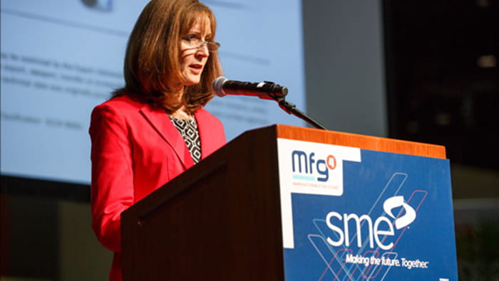 New manufacturing techniques, innovation and standard work are critical to Pratt & Whitney's success as the company begins producing its next generation family of engines. This is the message Lynn Gambill, chief engineer, Manufacturing Engineering and Global Services for Pratt & Whitney, shared with an audience of manufacturing professionals gathered at the Society of Manufacturing Engineers "Manufacturing 4 the Future" event last week at the Connecticut Convention Center in Hartford.