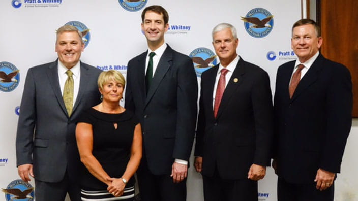 U.S. Sen. Tom Cotton, R-Ark. and U.S. Rep. Steve Womack, R-Ark. visited Pratt & Whitney PSD to recognize the growth and investment made at the facility. In 2014, the company invested $6 million in capital upgrades to prepare for additional case repairs. The facility has grown in capacity by 60 percent since 2013.