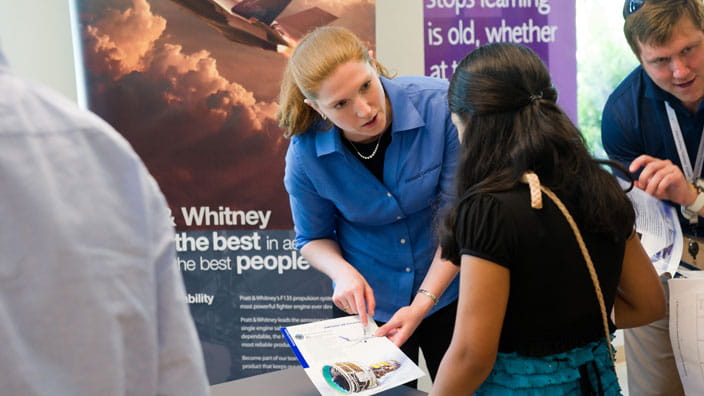 The students were part of the Connecticut Center for Advanced Technology's Young Manufacturers Academy, designed to encourage young students to consider pursuing an education and future career in manufacturing. Pratt & Whitney employees also recently participated in a Young Manufacturer's Academy "mock" career fair held at Goodwin College, with a group of 20 students who completed the two-week Young Manufacturers Academy program. The Pratt & Whitney-sponsored event brought together students and their parents and highlighted the importance of programs like the Young Manufacturer's Academy to the future of the manufacturing and engineering industry. Students dressed in business attire and met with representatives of local companies and educational institutions to discuss their experience with the program and learn about each of the participating manufacturers.