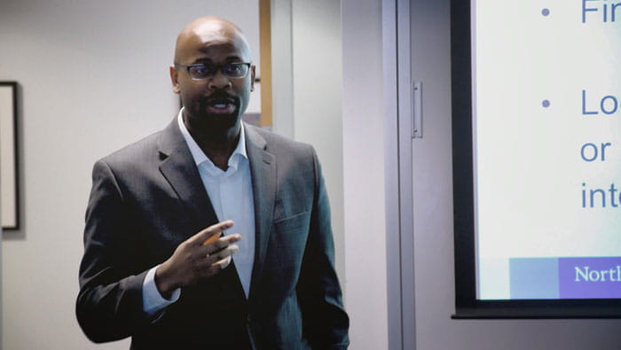 Bradley Akubuiro, communications program manager for Pratt & Whitney Military Engines, spoke to an audience of practicing African-American journalists and journalism students during the National Association of Black Journalists' Midwest Summit in Evanston, Illinois.