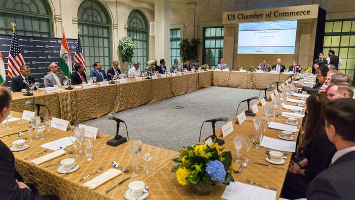 The conversation revolved around Indian Prime Minister Narendra Modi's "Make in India" initiative, the goals of which are to shift significant production and manufacturing opportunities into India.